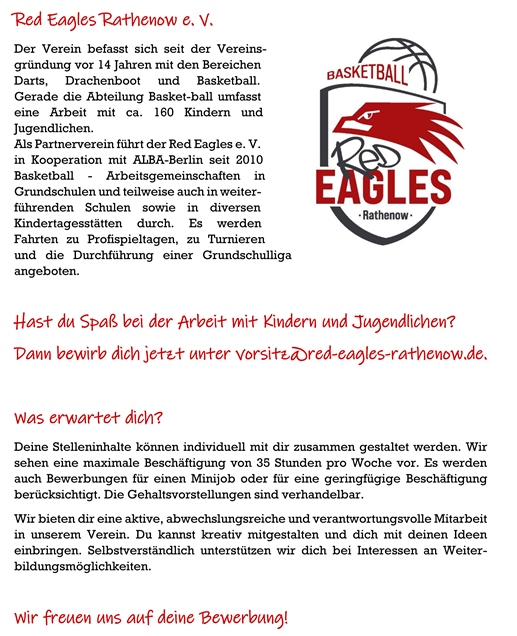 Red Eagles Rathenow e. V. sucht Mitarbeiter