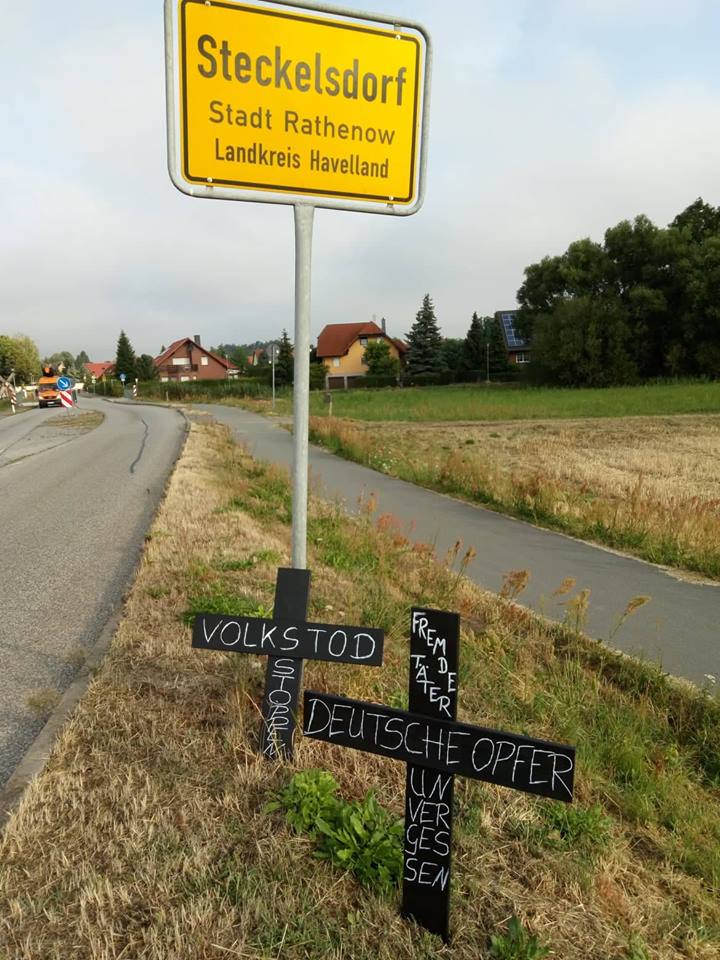 Durch die kürzlich, am Steckelsdorfer Ortsschild aufgestellten schwarzen Kreuze, mit vermutlich NS-Hintergrund, fühlen sich einige Bewohner des Ortes bedroht.