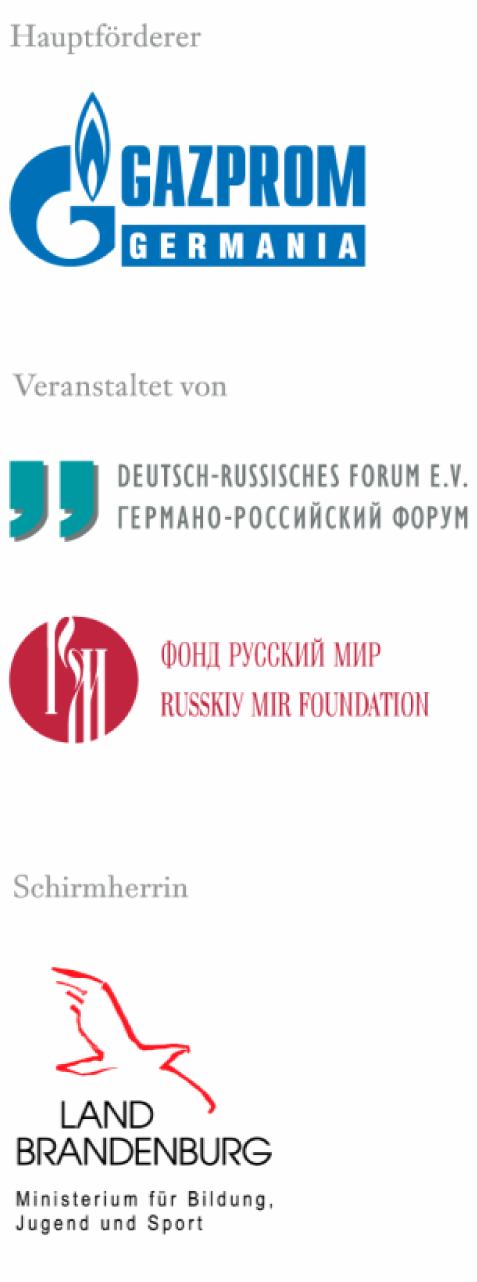 Das Deutsch‐Russische Forum e.V. führt den Bundescup „Spielend Russisch lernen“ gemeinsam mit der russischen Stiftung „Fond Russkij Mir“, in Kooperation mit der Globus‐Stiftung, der Stiftung Deutsch‐Russischer Jugendaustausch gGmbH, dem Goethe‐Institut Russland, dem Deutschen Russischlehrerverband e.V. und dem Fachverband Russisch und Mehrsprachigkeit e.V. durch. Das Projekt wird gefördert von der GAZPROM Germania GmbH, dem Klett Verlag sowie Lernidee Erlebnisreisen GmbH.
