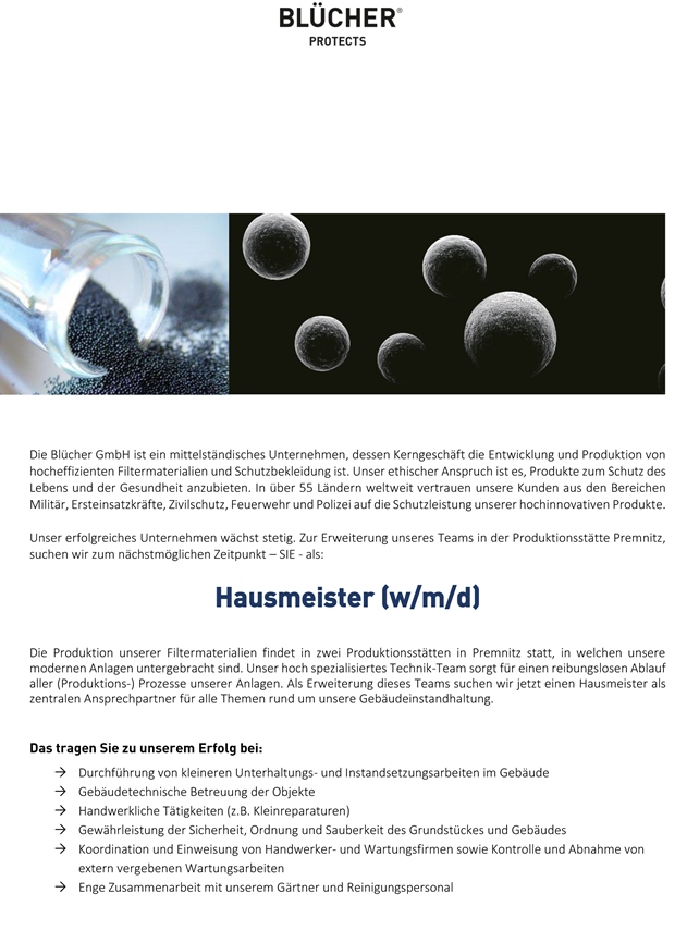 Stellenangebot: Hausmeister (m/w/d) für Blücher GmbH in Premnitz gesucht!