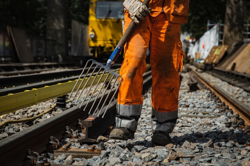 Gleisbauer arbeiten an den Verkehrswegen von morgen.