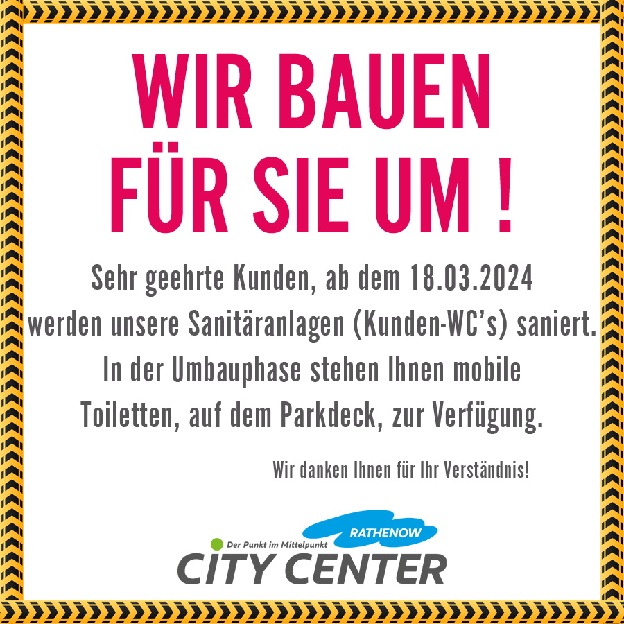 Das City Center Rathenow informiert seine Kunden über bevorstehende Umbauarbeiten.