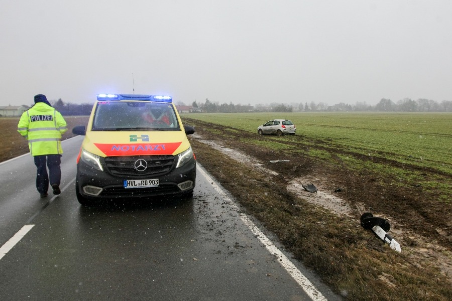 Am Freitagnachmittag ist ein PKW auf der L96 zwischen Böhne und dem Abzweig Vieritz von der Straße abgekommen und auf einem Feld zum Stehen gekommen.