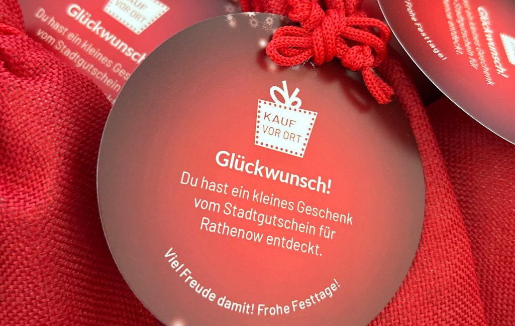 Am 6. Dezember sorgt der Nikolaus in Rathenow für Überraschungen. In allen Akzeptanzstellen des Rathenower Stadtgutscheins warten 250 liebevoll gefüllte Nikolaussäckerln darauf, entdeckt zu werden. Zehn davon enthalten zusätzlich Stadtgutscheine im Wert von 10 Euro. Ein Bummel durch die Geschäfte lohnt sich – nicht nur wegen der besonderen Überraschungen, sondern auch wegen der Angebote zum Fest.
