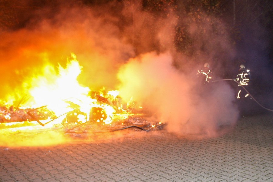 Den Feuerwehrleuten gelang es, mit zwei C-Rohren ein Übergreifen der Flammen auf die angrenzende Vegetation zu verhindern. Der Brand konnte nach intensiven Löscharbeiten unter Kontrolle gebracht und gegen 08:30 Uhr vollständig gelöscht werden.