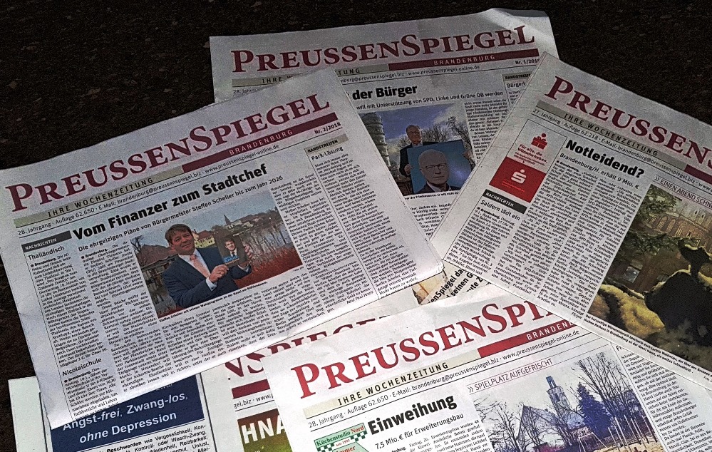 Schocknachricht für die Mitarbeiter des PreussenSpiegel. Das beliebte Wochenblatt wird am 31.03.18 zum letzten Mal als Regionalausgabe erscheinen. Gestern wurde auf einer Betriebsversammlung allen Mitarbeitern aus Rathenow und Brandenburg an der Havel aus wirtschaftlichen Gründen gekündigt.
